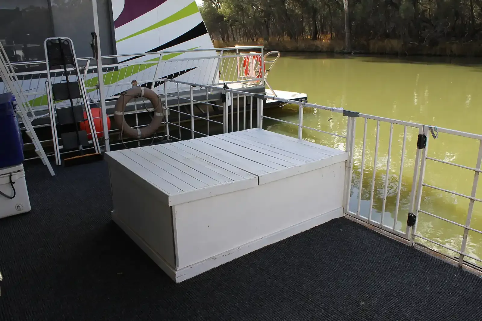 Currently moored at Bruce’s Bend Marina, Suzie Woo offers secure, gated access, stunning views, and a peaceful community surrounded by the beauty of King’s Billabong Nature Reserve.